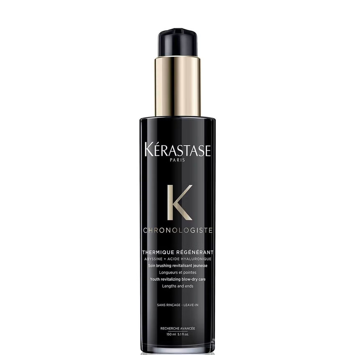 Infused with hyaluronic acid, abyssine and vitamin E to fight the signs of aging scalp and hair. Thermique Régénérant provides heat protection up to 230°C and 24 hour frizz-control. Styling is facilitated for youthful bounce and voluptuousness.